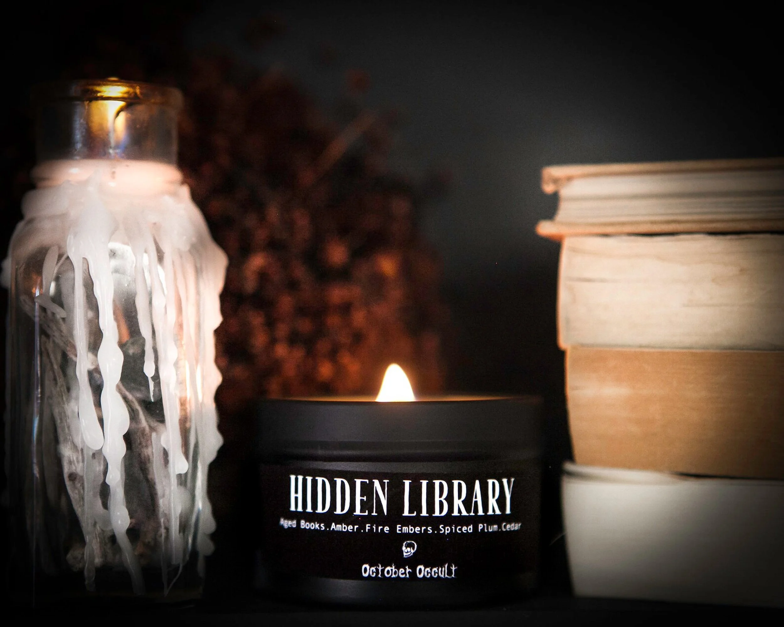 YULE FOLKLORE | Woodwick + Soy Coconut Blend - fir needle, woodsmoke, evergreen, black spruce, myrrh, oakmoss $45.00 Stocking Stuffers Matte Black Candle Tins ~ Set of 4, bulk discount $50.00